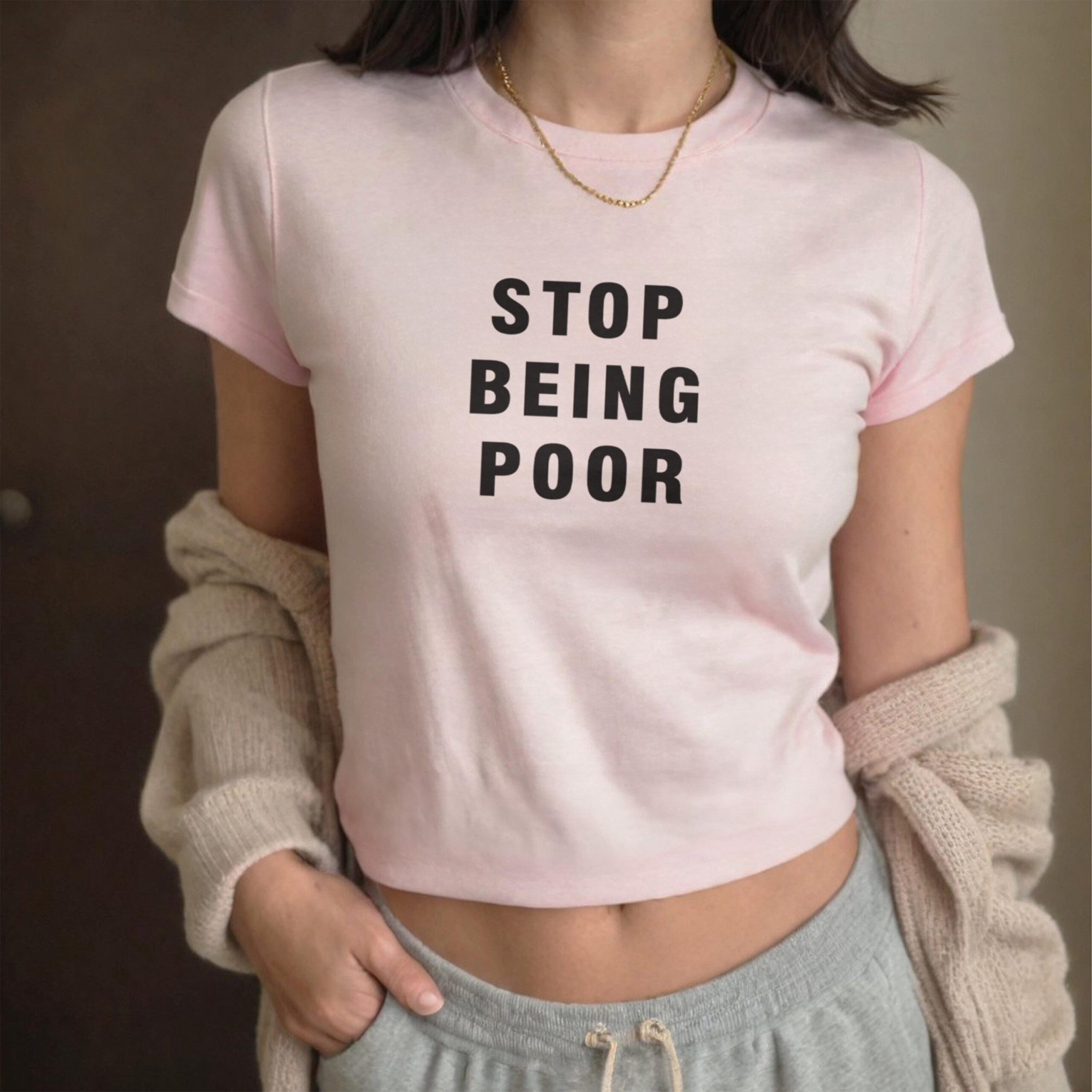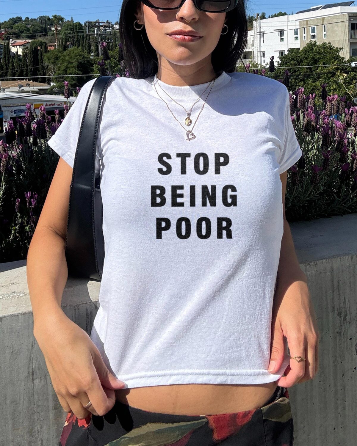 Y2K Stop Being Poor Baby Tee – Funny Quote Summer Crop Top